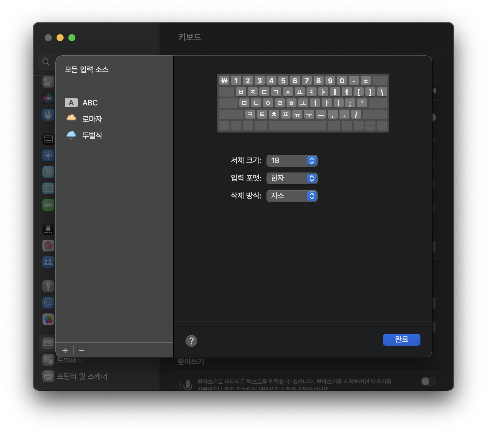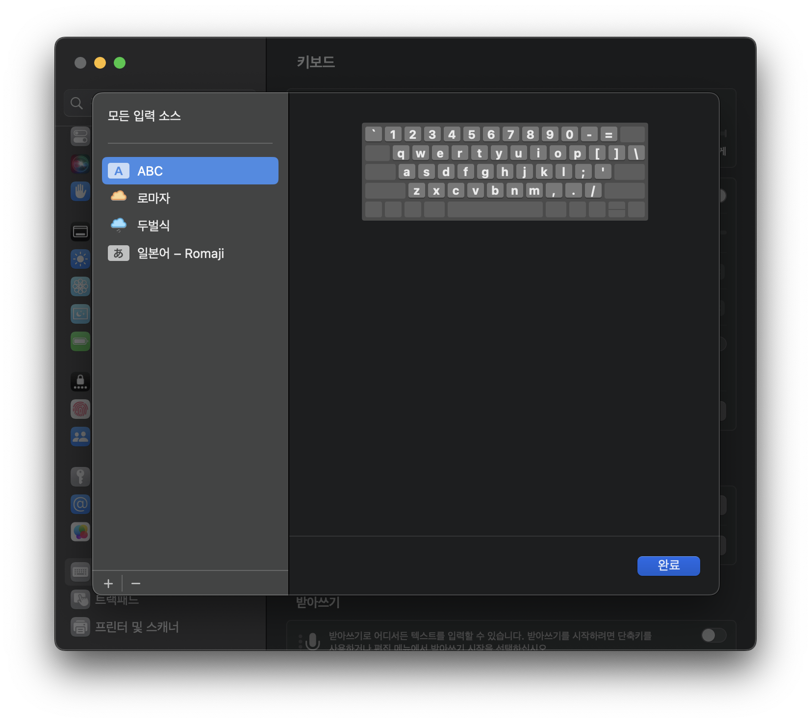 1. 키보드 입력소스에 들어가면 위와 같은 화면을 볼 수 있습니다.