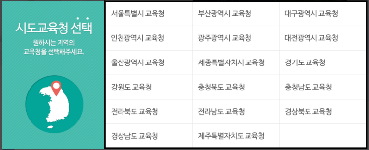 2. 학생의 해당 교육청을 선택하여주세요. 모든 교육청이 통합으로 회원가입 되기 때문에 아무것이나 선택하여도 크게 문제는 없습니다.