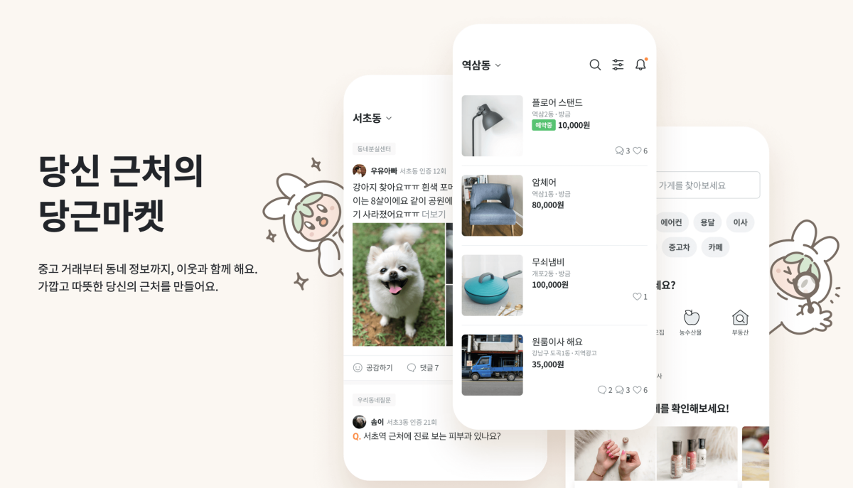 당근마켓은 일반적인 거래 플랫폼과는 다른 점이 있습니다. 동네 인증을 통해서 내가 소속한 동네의 물품만을 사고 팔수 있습니다. 그래서 직거래를 할수 있도록 돕는 플랫폼이라고 할수 있습니다. 중고 거래의 가장 취약한 점은 거래를 하는데 사기를 당할 위험이 있다는 것인데 그것을 사전에 예방할수 있습니다.
