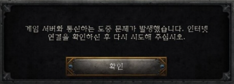 - 게임 서버와 통신하는 도중 문제가 발생했습니다. 인터넷 연결을 확인하신 후 다시 시도해 주십시오.