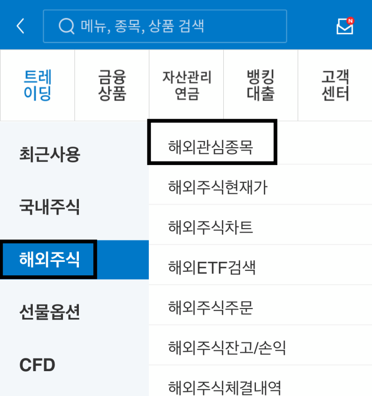 ② 해외주식 관심종목으로 들어갑니다. 해외주식에서 독일의 다임러 주시을 찾아야 합니다.