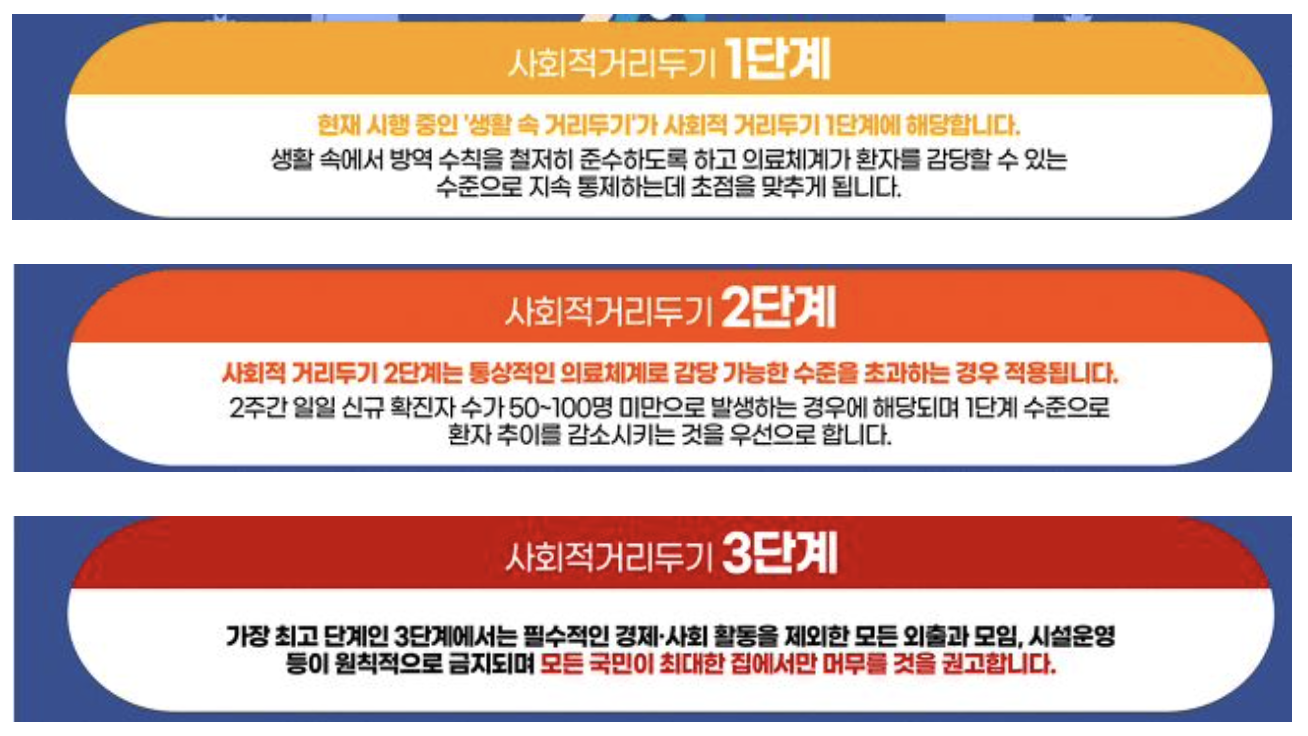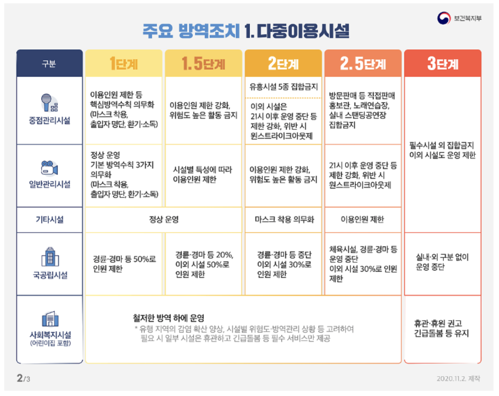 1. 지자체별로 단계를 정하기도 함 (현재 수도권 2.5단계)