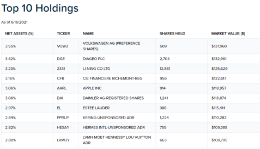 샤넬 주식도 함께 매매할 수 있으면 좋겠지만 상장된 주식이 아니기 때문에 LUXE의 포트폴리오에는 포함되지 않는다고 합니다.
