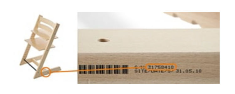 ▲ 스토케 하이체어의 바닥부분을 보면 바코드와 함께 S/N 번호가 있습니다. 이 번호를 일련번호로 입력하면 됩니다.