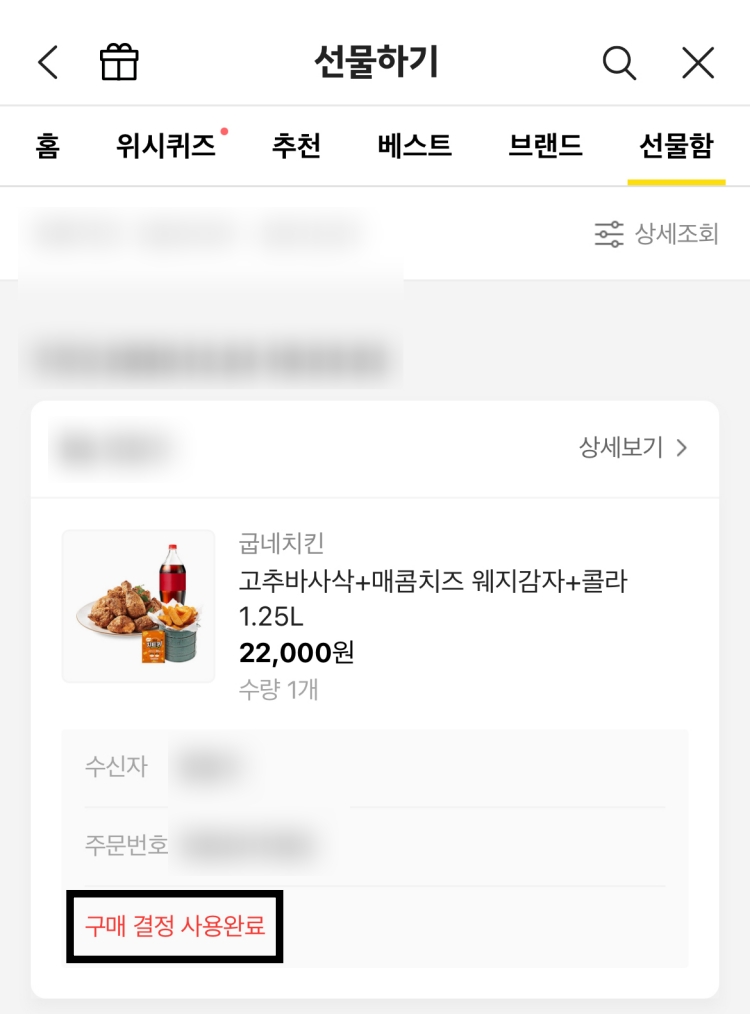 선물하기 ▶ 선물함 ▶ 주문내역 ▶ 상태 확인
