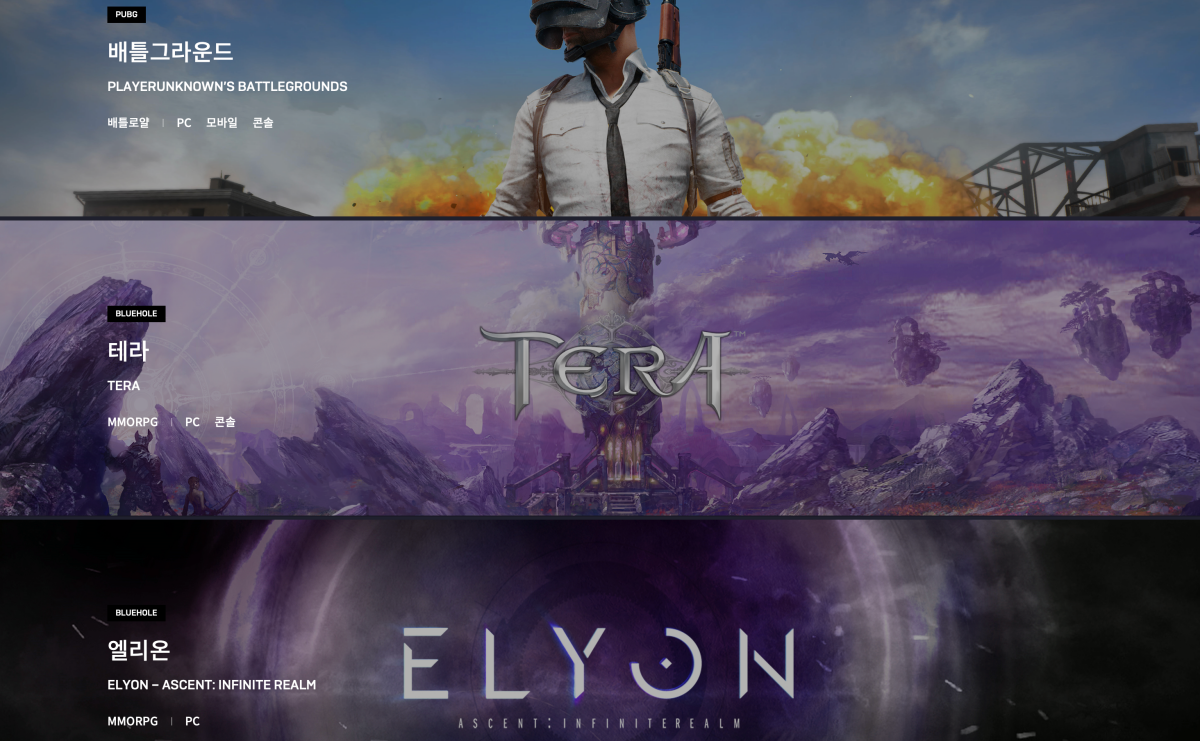 크래프톤의 대표 게임은 테라와 배틀그라운드입니다. 우리 나라의 배틀그라운드가 세계적으로 아주 인기 있는 게임이 된 것이 참 자랑스럽습니다. 우리라나는 역시 게임 강국이라고 할수 있지요.