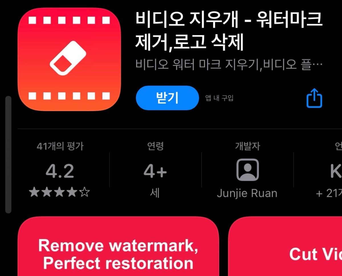 3. 화질이 않좋아지지만 워터마크 제거 앱을 사용한다.