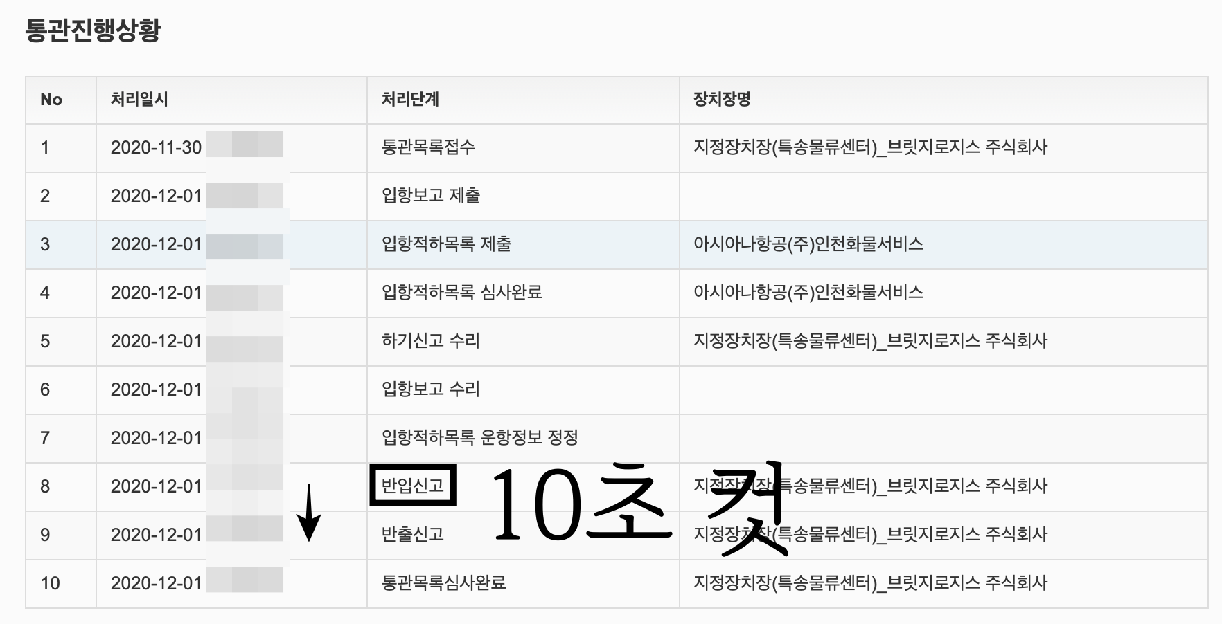 왜냐하면 이 통관 자체가 복불복이 좀 있습니다. 어떤 사람은 목록통관이라고 하더라도 심사를 까다롭게 할수도 있고 어떤 사람은 시간차가 없이 바로바로 통관될수도 있습니다. 그러니까 반입 신고 이후에 멈추었다고 하더라도 기다려보시면 됩니다.