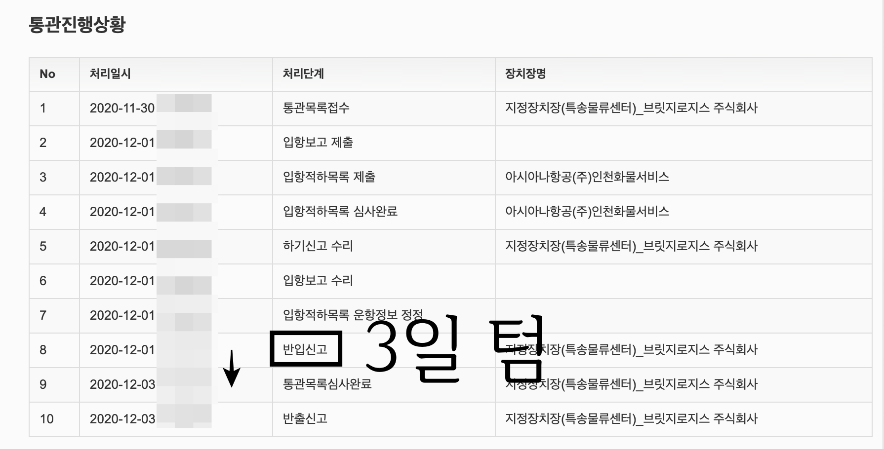 2. 상황에 따라서는 반입신고 이후에 몇일이 걸릴수 있습니다. - 기다리면 해결 됩니다.