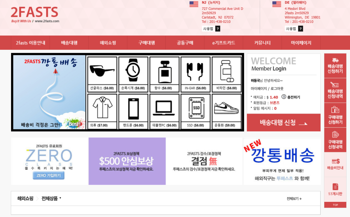 투패스츠는 깡통배송으로 유명한 배송대행지 사이트입니다. 미국의 배송대행을 담당하고 있고 아마 직구를 하는 사람이라면 모를 사람이 없을 것입니다. 몰테일이나 유명한 배대지가 있지만 그 사이트보다 오히려 더 많이 찾는 곳일수도 있습니다. 각종 커뮤니티를 보면 깡통배송이라는 말이 많거든요. 고정배송비로 배송을 해주는 곳이 있지만 그런 말보다는 깡통배송이라는 말이 일반적으로 많이 사용되는 것을 보면 그렇습니다.