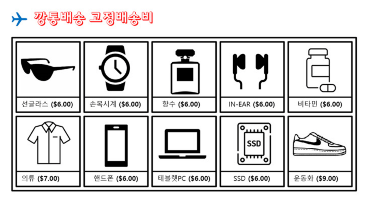 깡통배송이란 고정배송비를 말합니다. 원래 일반적인 국제 물류 배송은 무게에 따라서 배송비가 달라지지만 신발, 손목시계, 선글라스 등등 우리나라 사람들이 많이 구매하는 품목에 한해서 깡통배송 고정배송비를 정해놓음으로 조금 더 저렴하고 빠르게 물건을 받아볼수 있게끔 합니다.