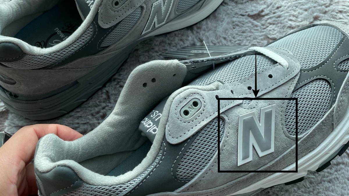 2. 뉴발란스 N 마크 자체가 없습니다. 본드자국은 있는데 떨어진 것으로 보입니다.