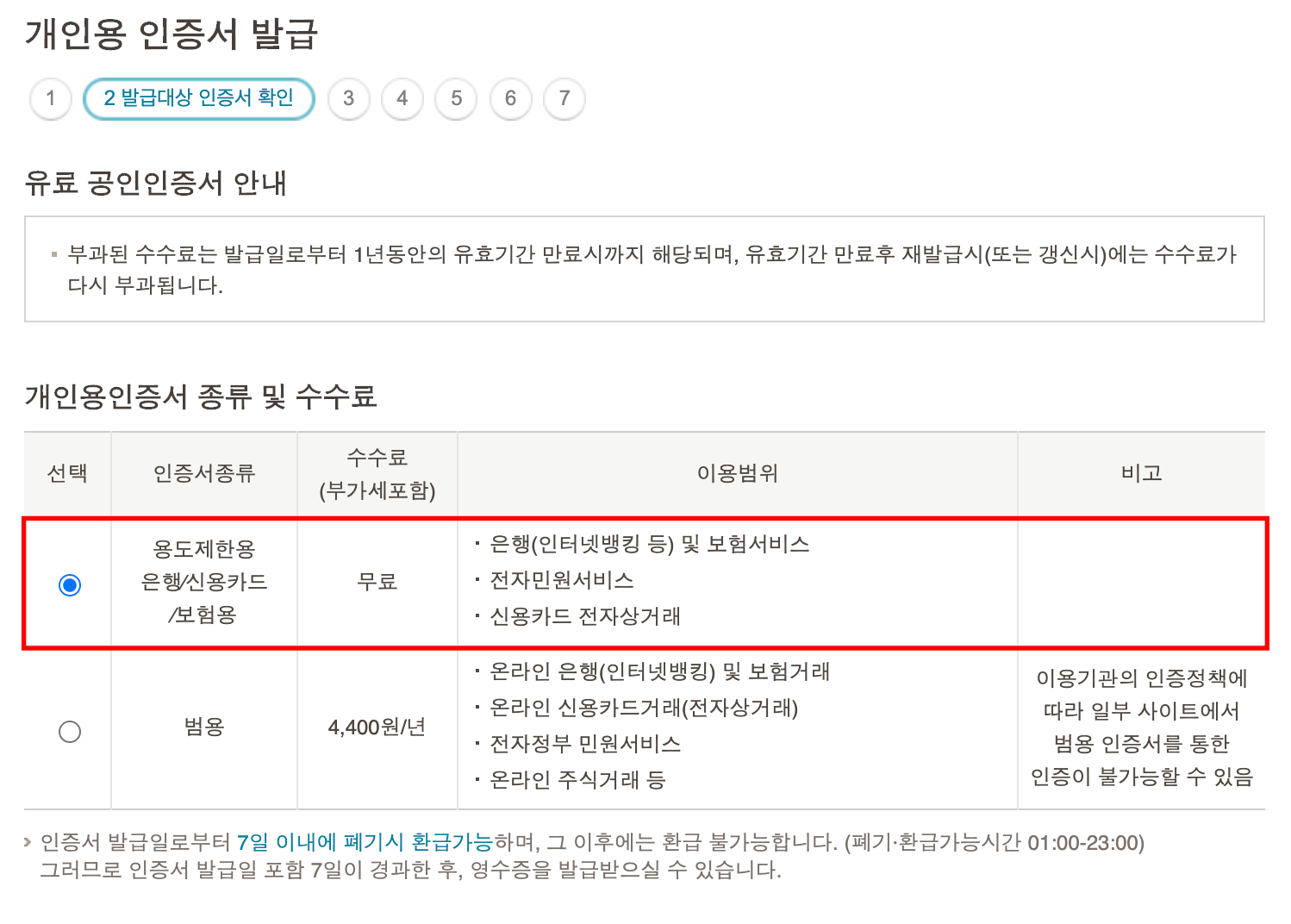 5. 공인인증서는 용도제한용과 범용 공인인증서로 나뉩니다. 일반 관공서에서는 용도제한용으로 대부분 사용할 수 있습니다. 범용은 주식거래를 할 때 필요한데 주식거래를 하더라도 무료로 공인인증서를 받을 수도 있습니다.